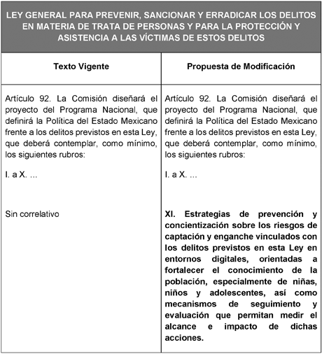 Que reforma diversas disposiciones de la Ley General para Prevenir, Sancionar y Erradicar los Delitos en Materia de Trata de Personas y para la Protección y Asistencia a las Víctimas de estos Delitos, a fin de fortalecer las acciones de prevención de la captación digital de niñas, niños y adolescentes, a cargo de la diputada Ivonne Aracelly Ortega Pacheco, del Grupo Parlamentario de Movimiento Ciudadano