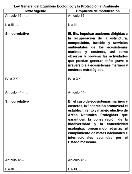 Asimismo, fortalecer la promoción del establecimiento y manejo efectivo de áreas naturales protegidas en ecosistemas marinos y costeros, garantizando la conservación de la biodiversidad y la conectividad ecológica. Por último, precisar la competencia de la Federación respecto de las zonas marinas bajo jurisdicción nacional, incluyendo la Zona Económica Exclusiva, bajo principios de sustentabilidad y conservación ecológica.
