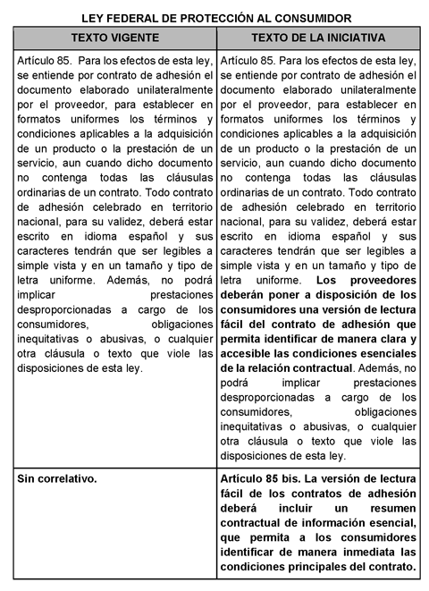 A continuación, se agrega un cuadro comparativo de la propuesta de reforma: