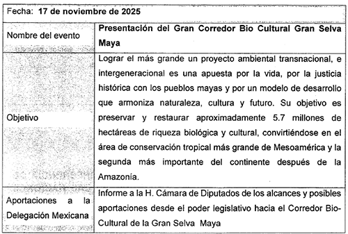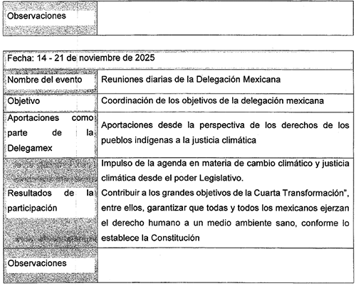 Mi participación en la Delegación Mexicana en la COP-30, celebrada en Brasil, representó un avance sustantivo en el posicionamiento de México como un actor comprometido con la justicia climática, la protección de la biodiversidad y el reconocimiento pleno de los derechos de los pueblos indígenas como pilares fundamentales de la acción climática global . Los resultados alcanzados para la delegación de legisladores y en particular de mi participación refleja una visión integral que articula la agenda ambiental con los derechos humanos, el conocimiento ancestral y la gobernanza territorial.