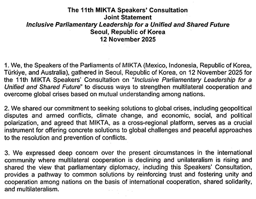 Del licenciado Edgard Alejandro García Villaseñor, referente a la undécima Conferencia de Presidentes de Parlamento de MIKTA, llevada a cabo el miércoles 12 de noviembre de 2025 en Seúl, República de Corea