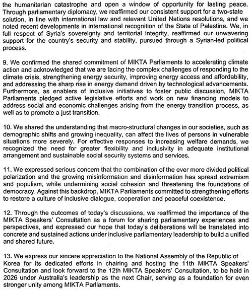 La undécima Conferencia de Presidentes de Parlamento de MIKTA cumplió con su cometido. Este espacio de diálogo permitió que las delegaciones participantes reflexionáramos sobre los desafíos que enfrentamos, pero también nos permitió escucharnos para proponer juntos soluciones.