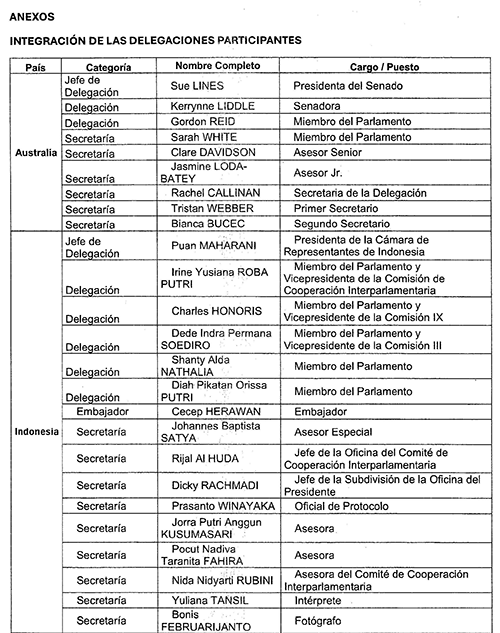 A partir de 2015, se estableció el mecanismo de consulta parlamentaria. De esta manera, a la fecha se han celebrado once reuniones de este tipo. A continuación, se da cuenta de los encuentros llevados a cabo con anterioridad: