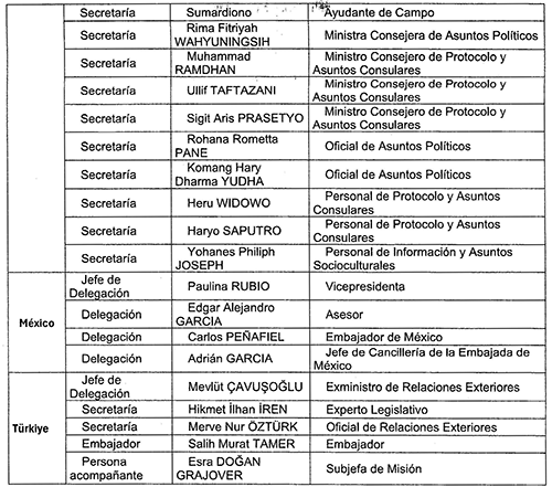 Ante ello, y en atención a la recomendación de la Secretaría de Relaciones Exteriores, la delegación mexicana propuso referir y utilizar en la declaración conjunta, con base en la propuesta turca, el lenguaje y los términos utilizados en el Joint Communiqué alcanzado en la 27a. Reunión de Ministros de Relaciones Exteriores de MIKTA.